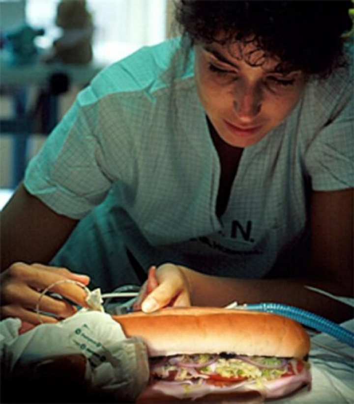 Фотошоп-мастера взяли обычные фотографии и заменили на них младенцев и смартфоны на сэндвичи, и вот каким был бы этот мир, если бы люди смотрели на сэндвичи с таким же умилением или интересом, как на детей или в смартфон.