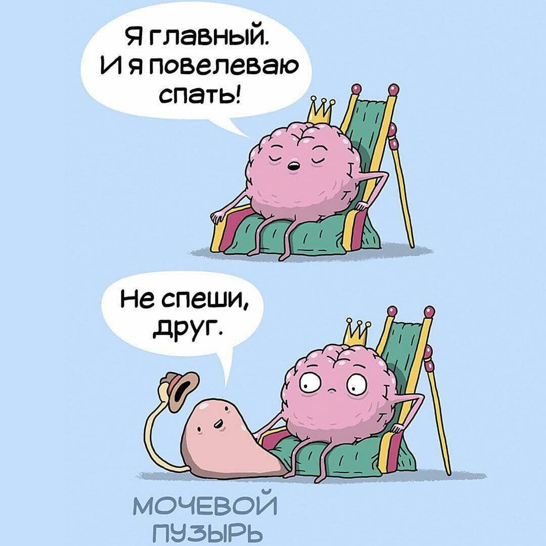 Оказалось, что печень частенько работает сверхурочно, а мозг подчиняется прихотям мочевого пузыря. Инстаграм аккаунт nefunnies показал пользователям сети работы этого талантливого художника. Предлагаем вам взглянуть на забавную жизнь, которая кипит внутри нас!