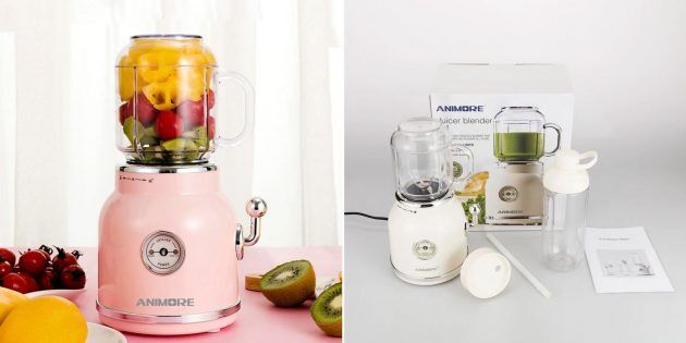 Необычный блендер в ретро‑дизайне, который не найти в других магазинах. Стоит немного дороже аналогов, но зато выглядит куда интереснее. Чего только стоят ручка запуска, как в игровом автомате, и круглый индикатор готовности. В комплекте с товаром идут две ёмкости для смешивания продуктов: широкая чашка на 500 мл и узкий стакан на 600 мл с крышкой. Внутри блендера - нож из нержавеющей стали с шестью лезвиями. Клиенты пишут в отзывах, что товар доставляют за 3–4 дня.