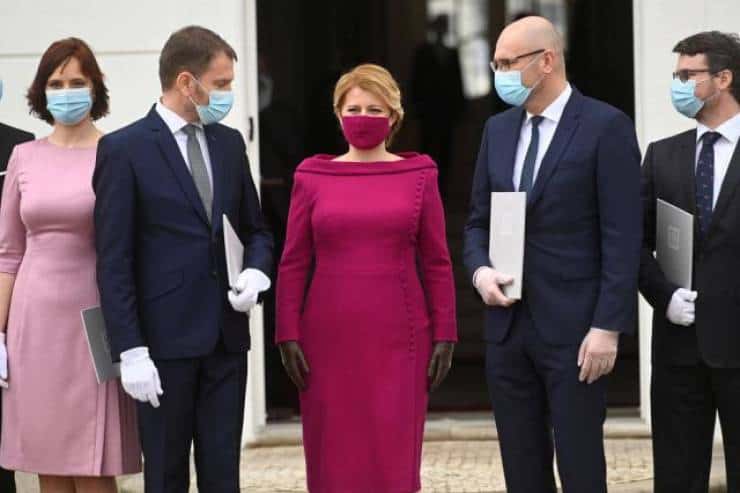 Президент Словакии Зузана Чапутова появилась на публике в стильной маске под цвет платья.