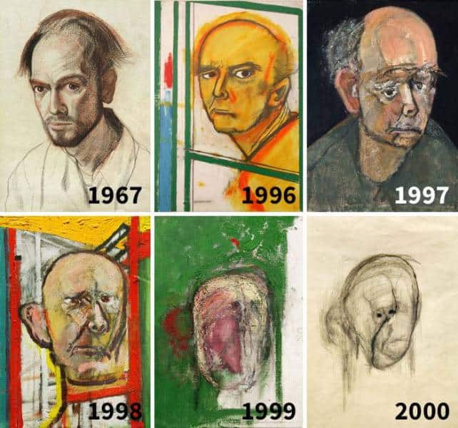 Американский художник из Великобритании Уильям Утермохлен создал душераздирающую финальную серию автопортретов страдая от болезни Альцгеймера, которая длилась около 5 лет, пока он едва не смог распознать свой собственный облик.