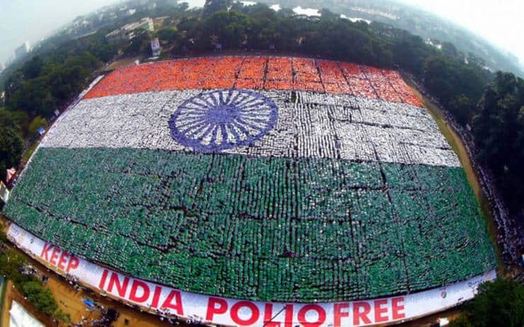 Индии принадлежит мировой рекорд самого большого флага, составленного из людей - 43,830 добровольцев