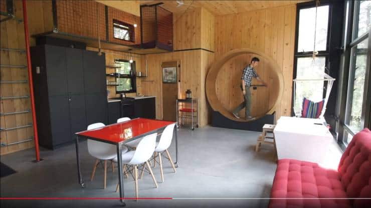 Это автономное жилье имеет энергетическое колесо, которое помогает заряжать солнечную батарею.
