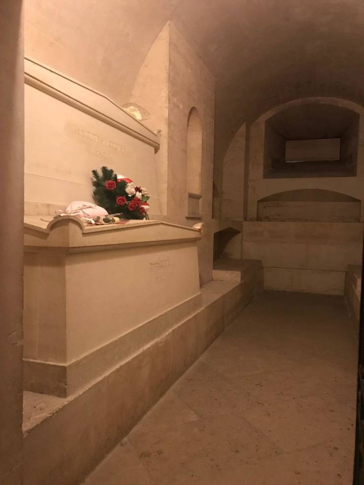 Гробница легендарного ученого Марии Кюри в Пантеоне в Париже. Ее гробница облицована свинцом толщиной в дюйм в качестве защиты от радиации. Ее останки радиоактивны по сей день.