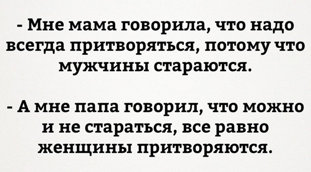 15 октября 2025, 13:06 Алексей ИвановЮмор для тех, кто уже повзрослел и понял, что «интрига дня» - это что приготовить на ужин ✕ Размер шрифта: 17px ✕ Ссылка скопирована! Очередная порция веселья для тех, кто понял жизнь и в цирке не смеется, потому что он в нем живёт.