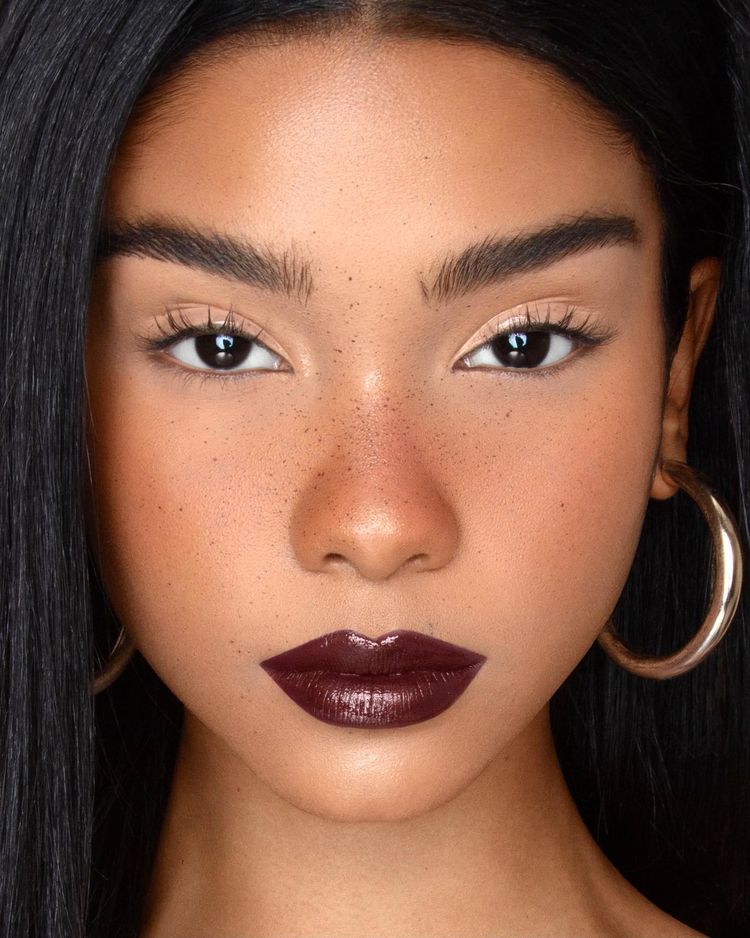 Если 2025-й выдался непростым и хочется оставить в нем все несбывшиеся планы, примерьте образ «dark feminine». Сделайте ставку на максимально темную помаду - от горького шоколада до почти черного вишневого. Глаза при этом оставьте «голыми» или лишь слегка подчеркните тушью. Чтобы контур был идеальным, вместо карандаша для губ используйте кайал для глаз - он держится в разы дольше.