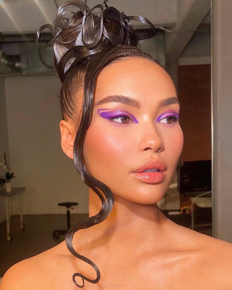 Иногда не нужно мудрить с растушевкой. Просто выберите один максимально яркий оттенок (электрик, фуксия или неон) и нанесите его на все веко или в виде широкой графичной стрелки. Минимум усилий - максимум внимания.