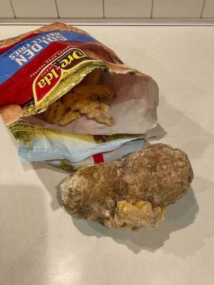 «Мама обнаружила в пачке с фри целую картофелину. Кажется, кто-то на производстве очень спешил домой»