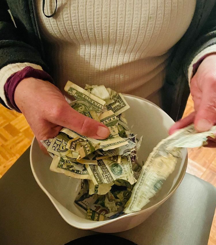 Хорошо, что владелец не попытался включить «обратный ход». В США банкноту обменяют, если сохранилось не менее 75% площади, в России правила чуть мягче - достаточно 55%. Но собирать этот пазл придется долго.