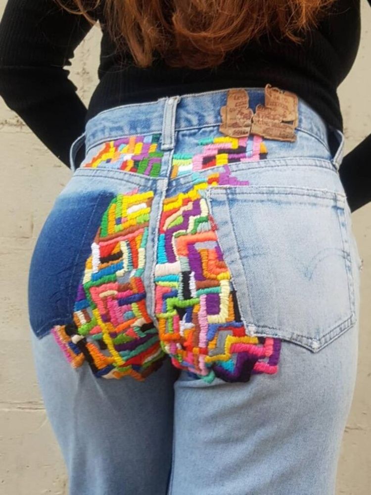 Герои этой подборки не боятся экспериментировать и делятся результатами своих творческих превращений. Кто-то впервые берётся за иголку и создаёт «осьминожий проект», кто-то добавляет на джинсы вышитых собак или динозавров, кто-то спасает протёртые вещи от мусорного ведра, превращая их в стильные апсайкл-шедевры.