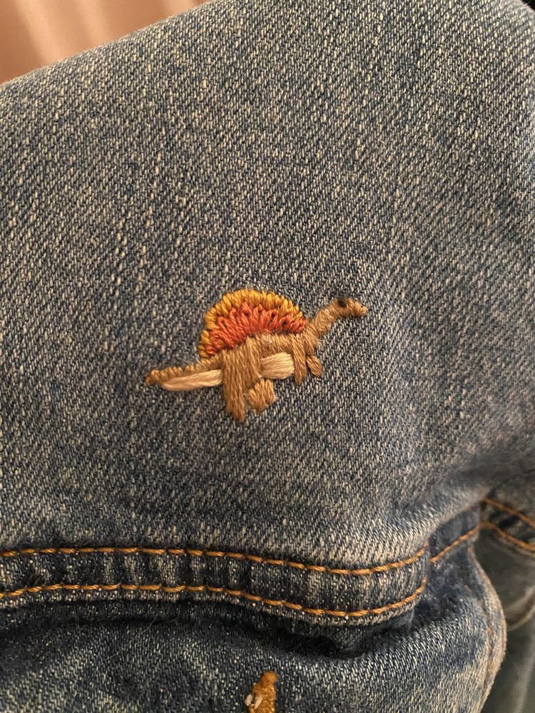 «Добавила этого милого маленького Спинозавра к моей джинсовой куртке, он не идеален, но он такой милый»