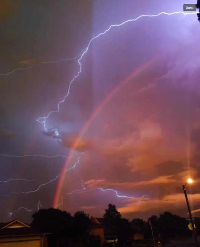 - Ночь в Техасе, где молнии танцуют с радугой.