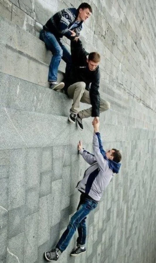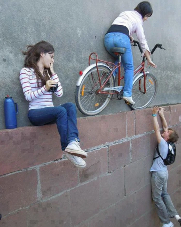 Я тебя держу! - напряжённый момент, пойманный в кадре.