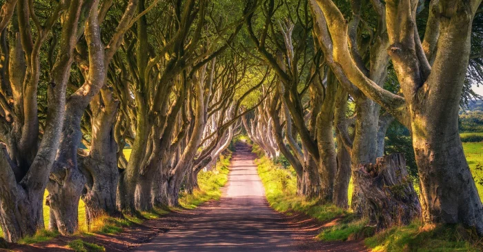 10. Дарк Хеджес – буковая аллея в графстве Антрим, Северная Ирландия, изогнутая в туннель из теней и света.