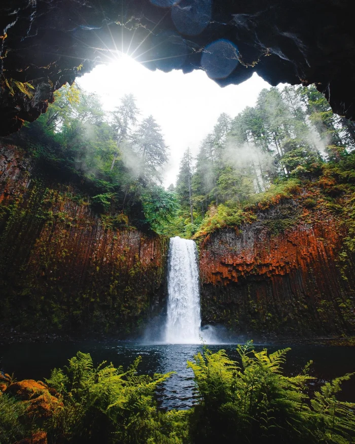2. Водопад Абиква в Орегоне, США, – место, где вода струится как серебряная нить в зелёном царстве.