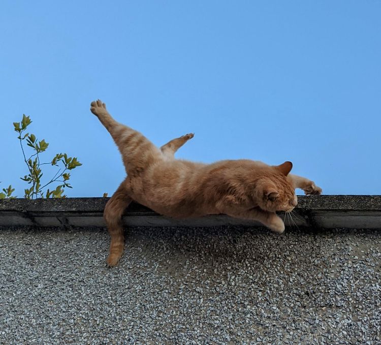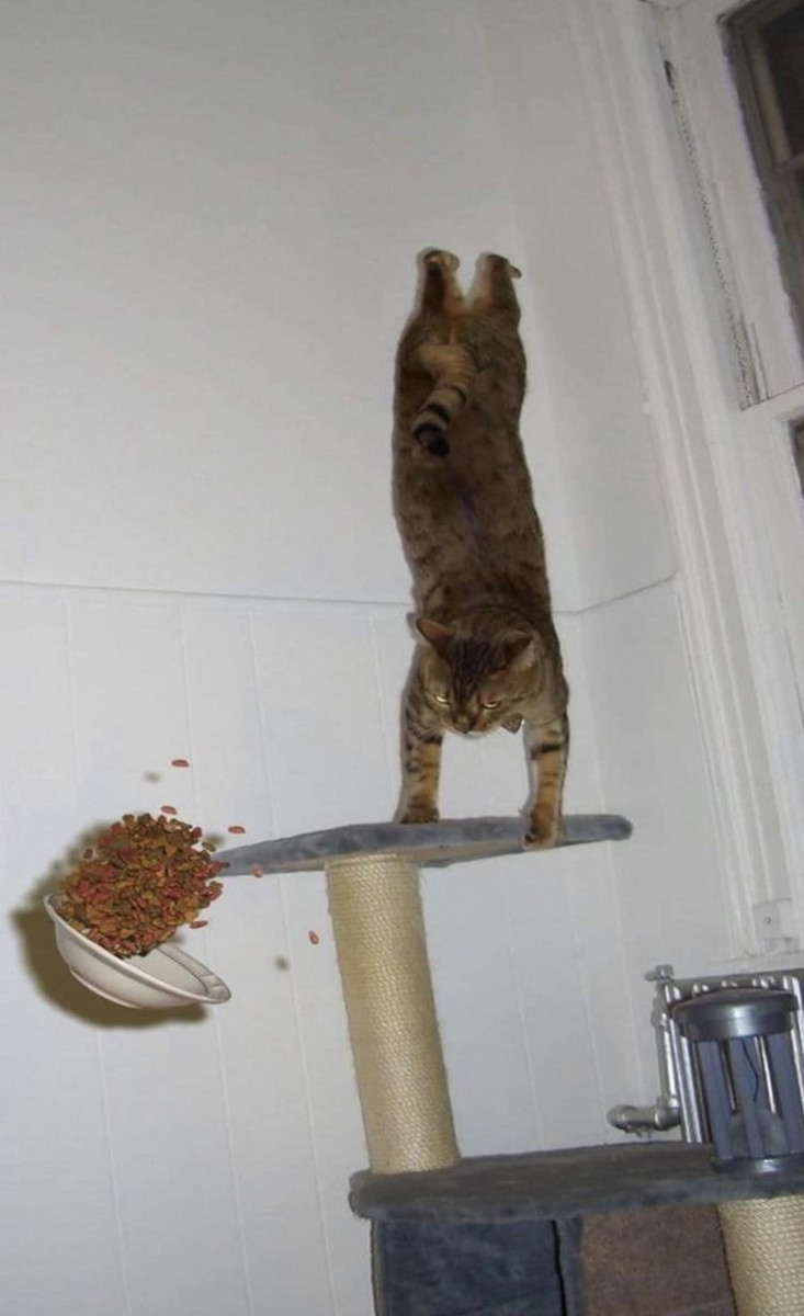 Тело - кошачье, грация - картофельная. В комментариях волновались: «Живой ли?» Автор успокоил: «Смущён, но цел». Кто-то дорисовал коту брейк-данс - отдельная сага