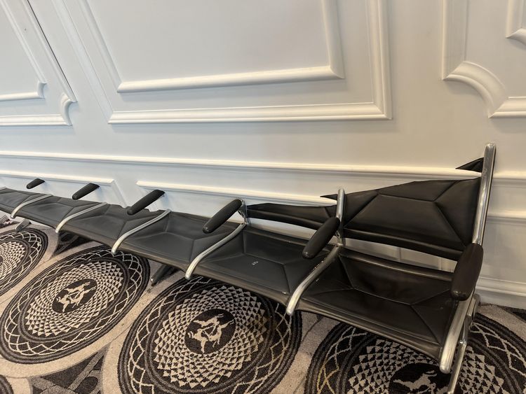 Один кадр, два измерения: стулья в аэропорту Остина врываются в стену. Арт-инсталляция? Да, но выглядит как глюк.