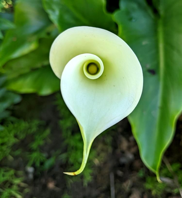 Ещё не распустившаяся калла, чья спираль закручена так аккуратно, что дух захватывает.