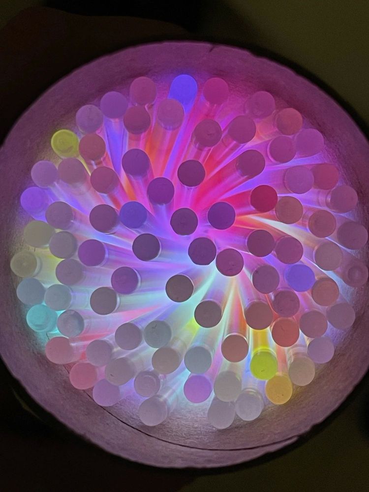 Парень сломал неоновые палочки, засыпал обратно в тубу - и получился мини-космос в картонке.