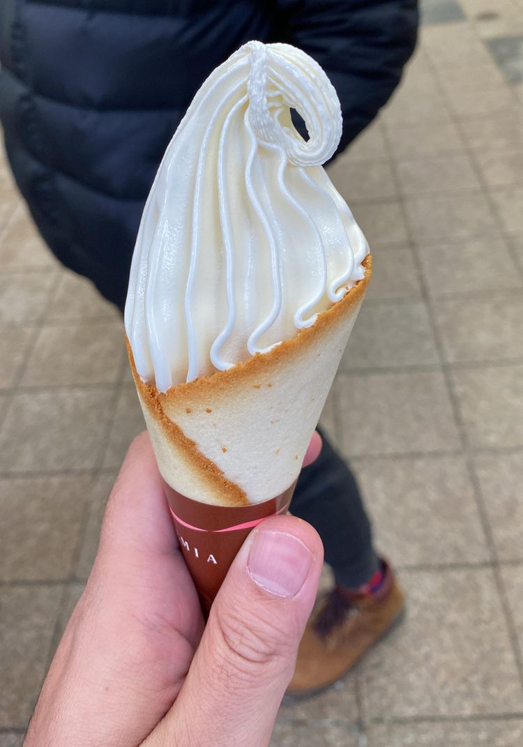 Рожок мороженого, где шарики лежат так ровно, что нарушить эту красоту - почти преступление.