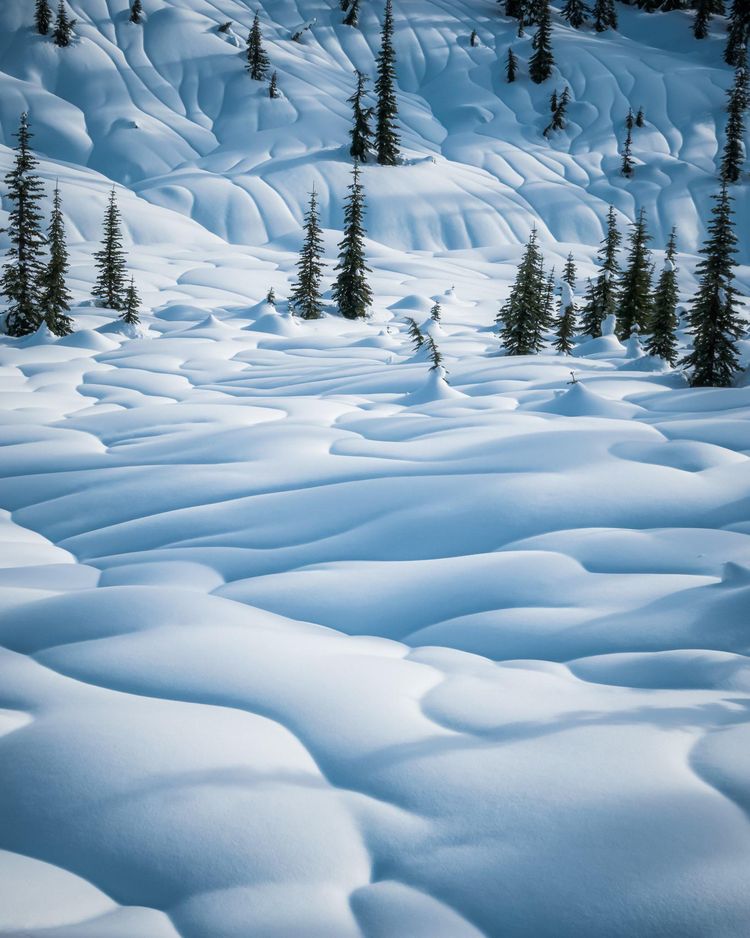 Дождь на снегу создал такие гладкие волны, что хочется провести по ним ладонью прямо через экран.