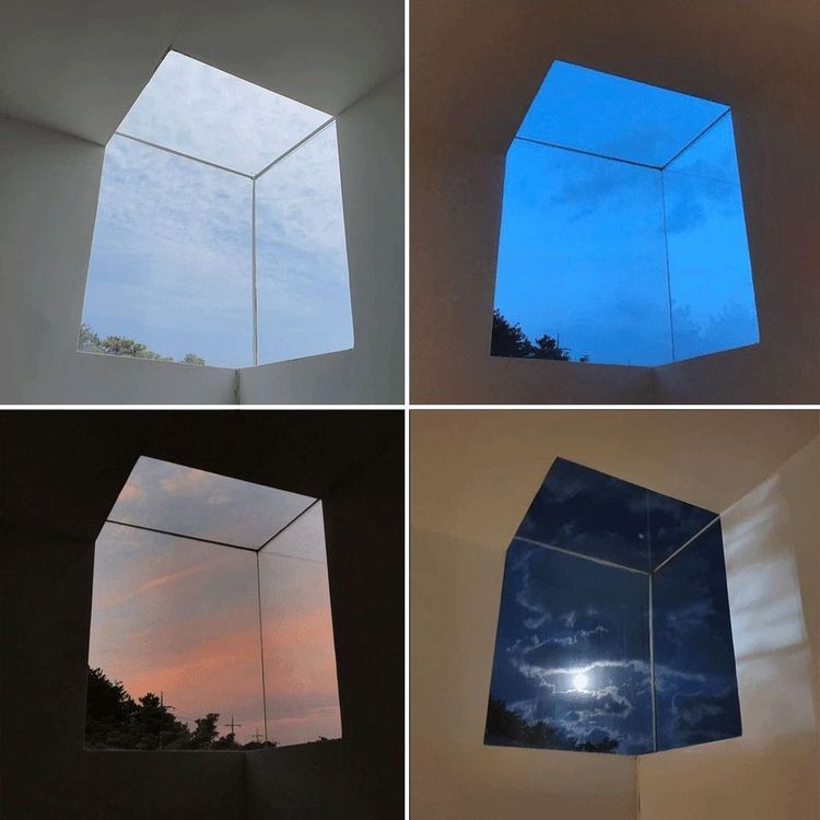 Окно в форме куба, которое в разное время суток выглядит как кадры из разных фильмов - и всё равно остаётся безупречным.