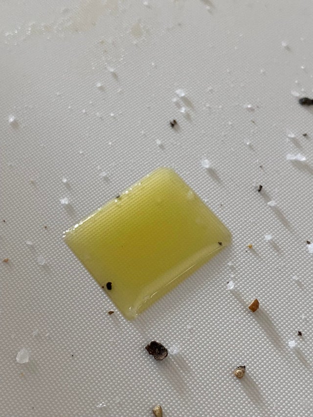 Кусочек масла, который сам собой сложился в почти идеальный квадрат. Прямо медитация на разделочной доске.