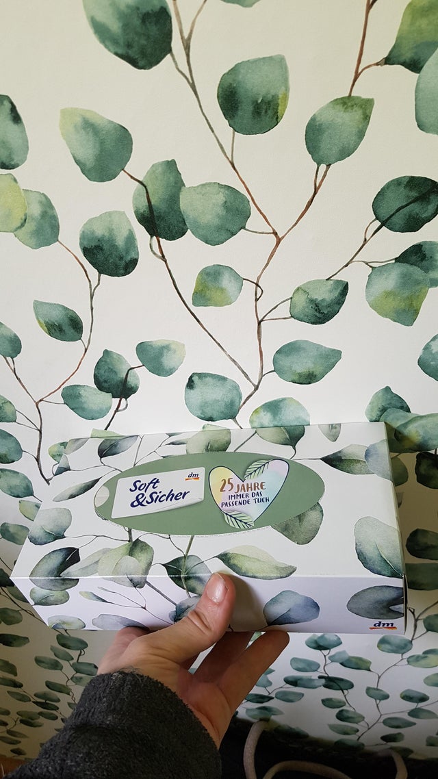 Коробка салфеток, которая слилась с обоями так, будто её туда приклеили ещё на стадии ремонта.