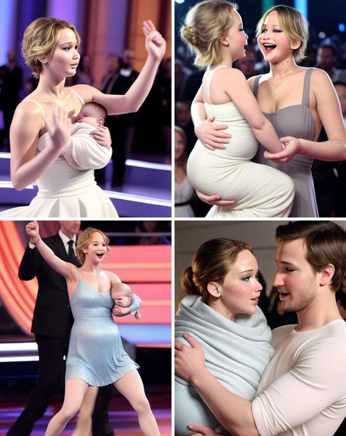 Дженнифер Лоуренс в роли матери. Звезда в объективе ИИ: материнство, которое шокирует