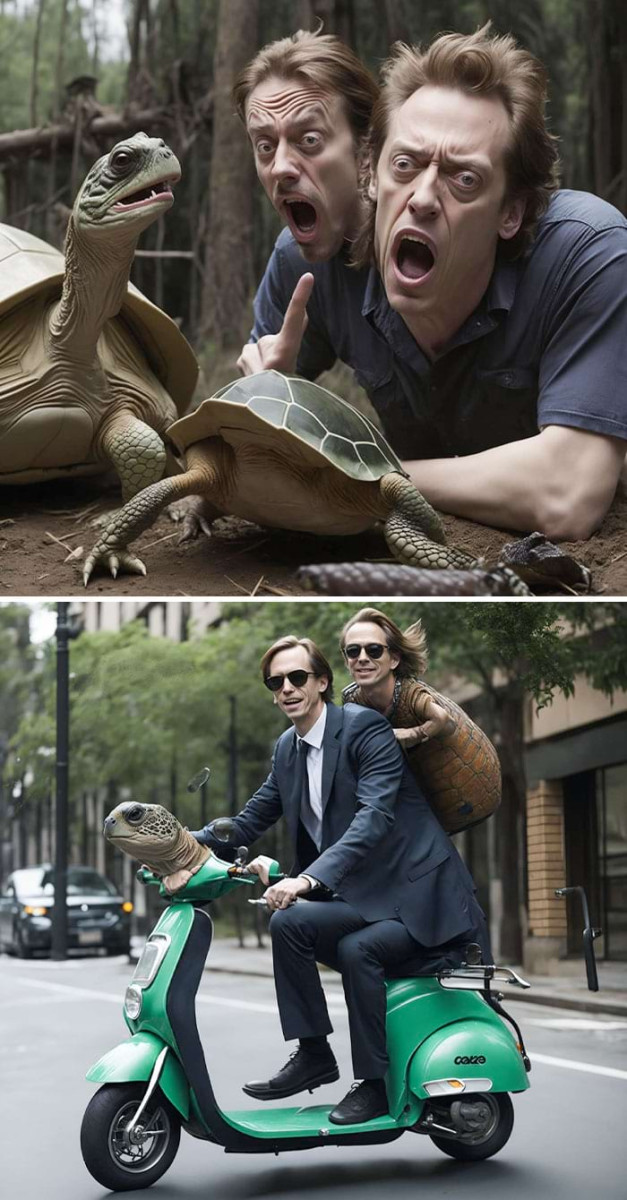 Стив Бушеми терпеть не может медлительных черепах! Драма в дикой природе, которую придумал ИИ