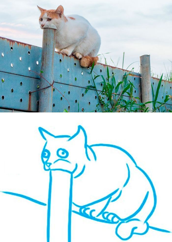 Второй столб сбивает с толку, ведь на нём нет крышки, как на том, что рядом с кошкой. Кажется, кто-то немного поленился!