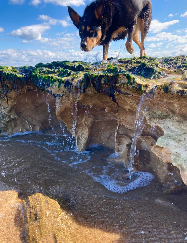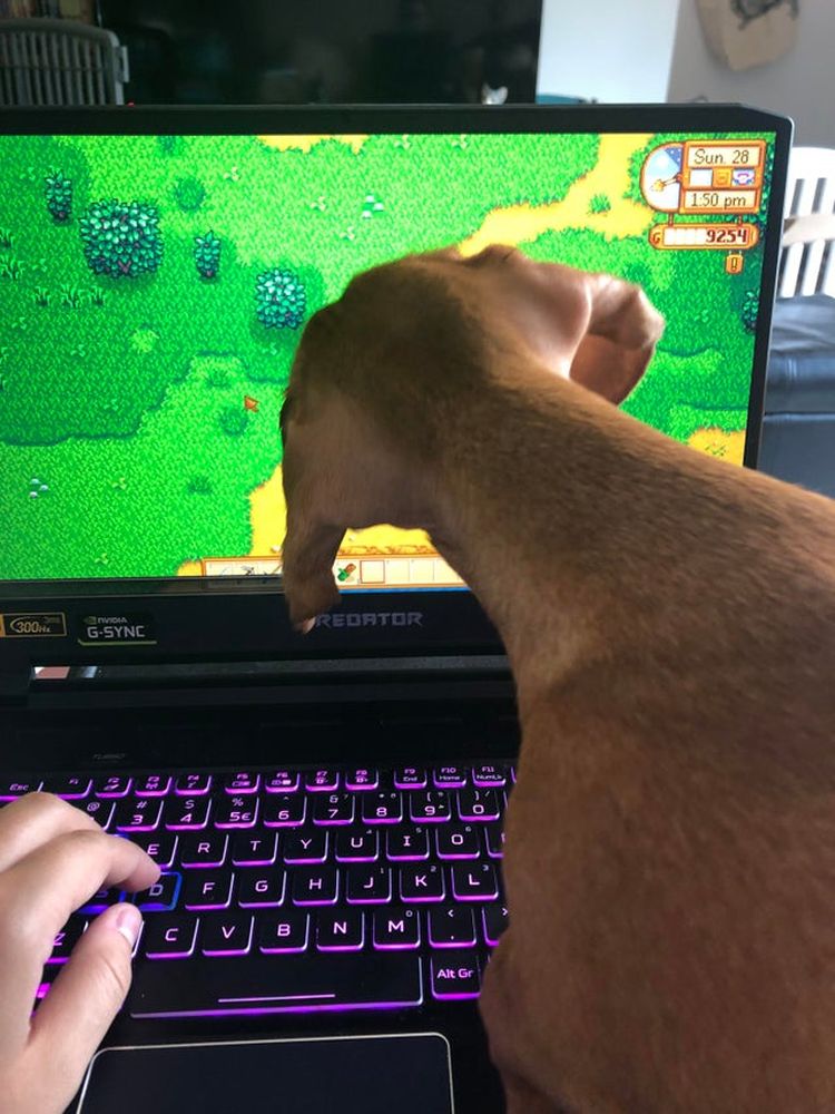 Стадии просмотра этого фото: увидеть заголовок, подумать, что за странный жест, и в итоге понять, что это просто пёс.