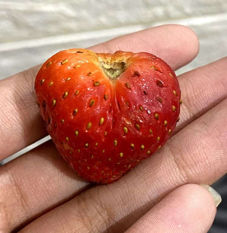 Автору снимка пришлось опубликовать дополнительное фото, чтобы доказать, что он не обрезал ягоду, и она действительно выросла в столь романтичной форме!