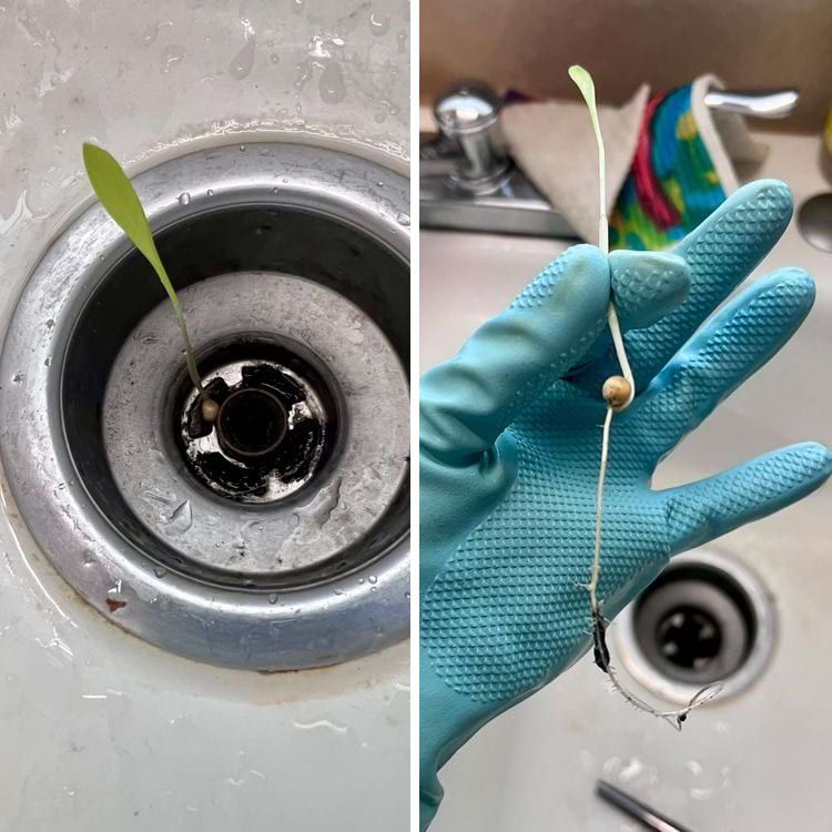 Женщина, автор снимка, рассказала: одно зернышко упало, когда муж готовил попкорн на сковороде, и пролежало в раковине под посудой несколько дней. Обнаружила она его уже проросшим, когда добралась до мытья. Почти все пользователи советовали немедленно высадить росток в сад или горшок, но дальнейшая судьба растения осталась неизвестной.