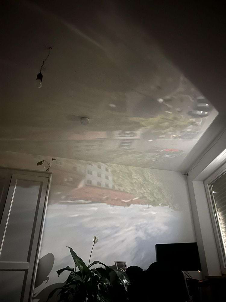 Очень наглядный и эффектный пример камеры-обскуры. В комментариях шутили, что теперь кто-нибудь может вычислить, где живет автор, и советовали нарисовать фреску по очертаниям проекции.
