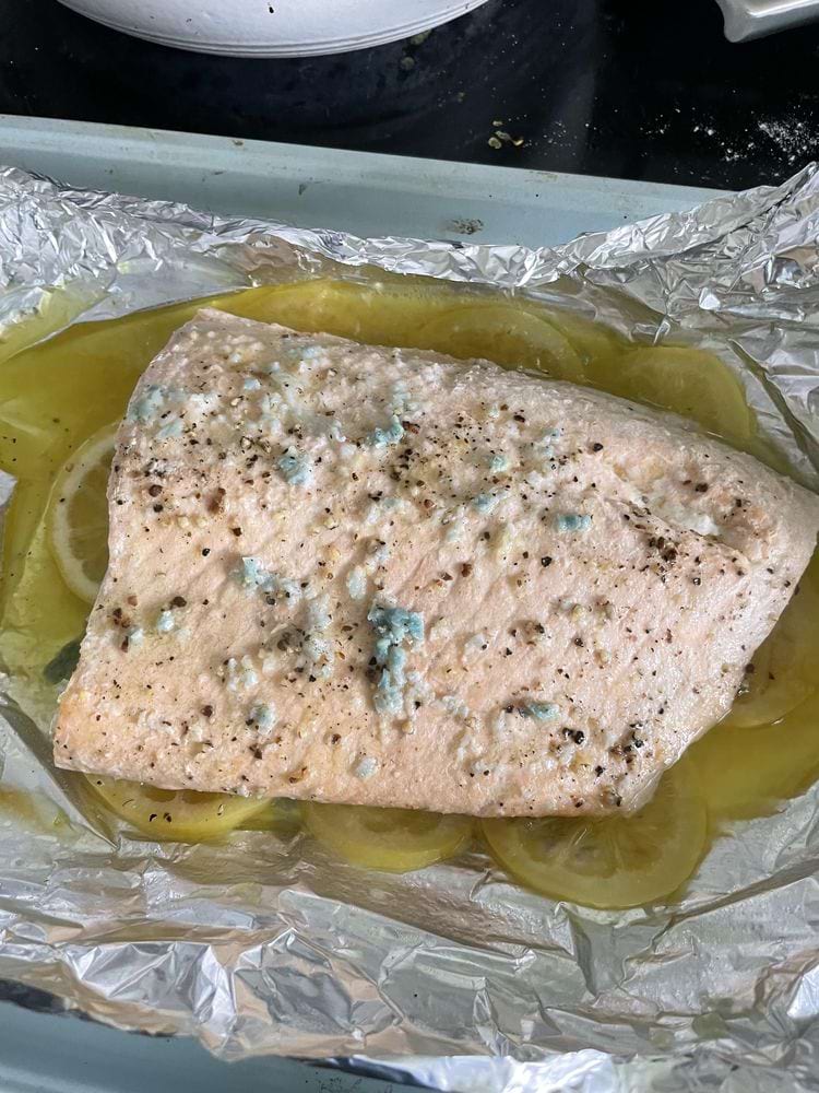 Этот неожиданный цветовой казус произошел из-за присутствия в рецепте лимонного сока, который вызвал реакцию и придал чесноку интригующий синий оттенок.