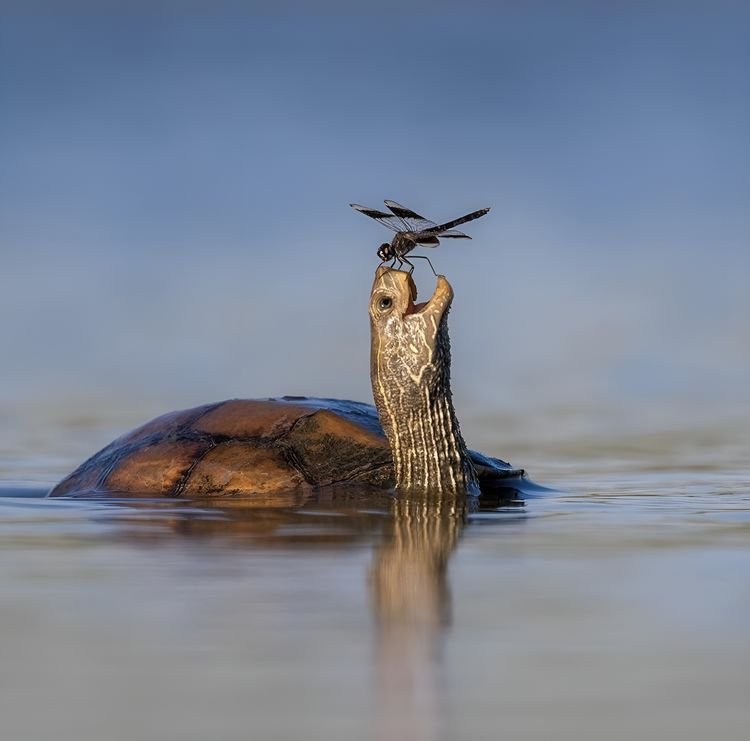 Черепашка, кажется, не против перекусить, хотя, возможно, она просто пришла на прием к доктору Стрекозе для срочной чистки носа.