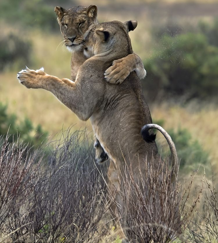 «Давайте дотанцуем до вон той аппетитной антилопы!» Львица справа выглядит так, будто наконец обрела спокойствие и гармонию, которые так долго искала.