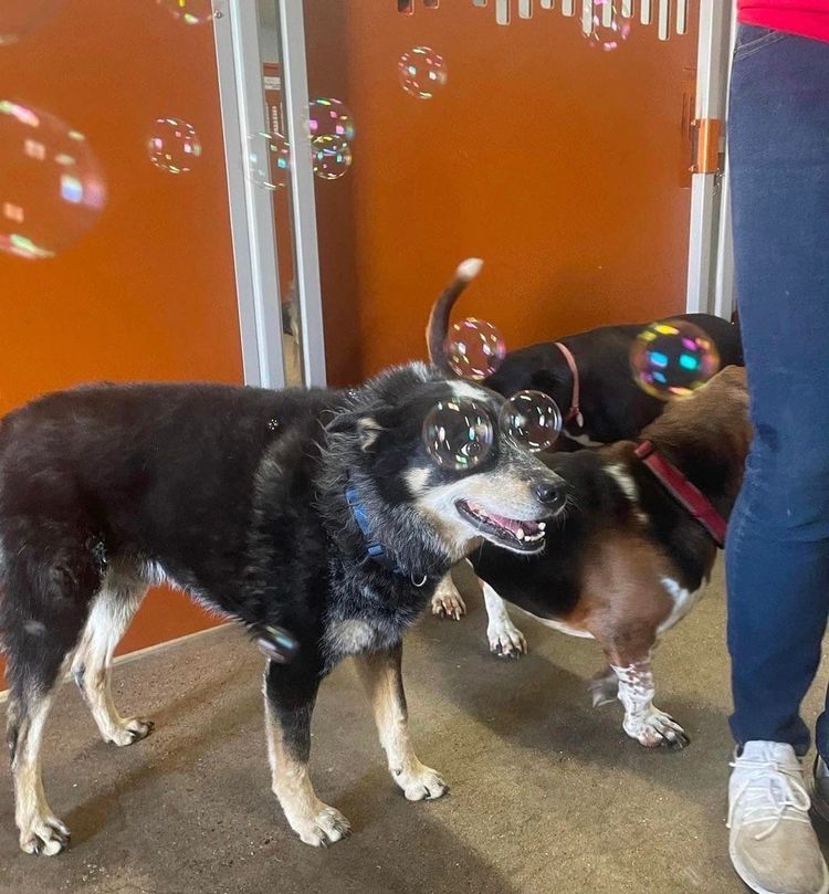 Этому образу для ковровой дорожки не хватает разве что блестящего плаща и винтажных роликов. Мы всем сердцем надеемся, что песику не щипало глаза, когда эта невесомая конструкция лопнула 🫧.