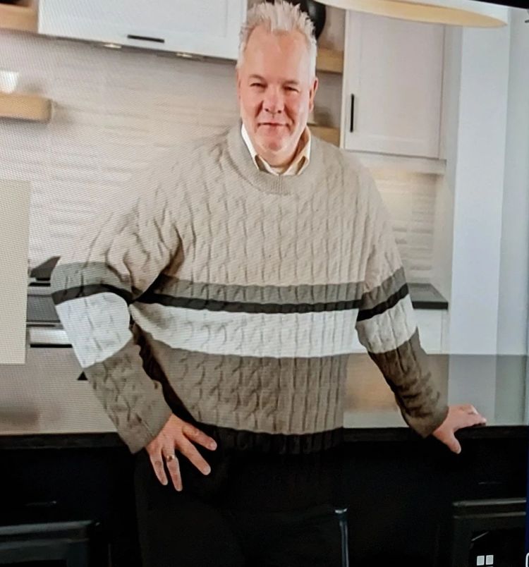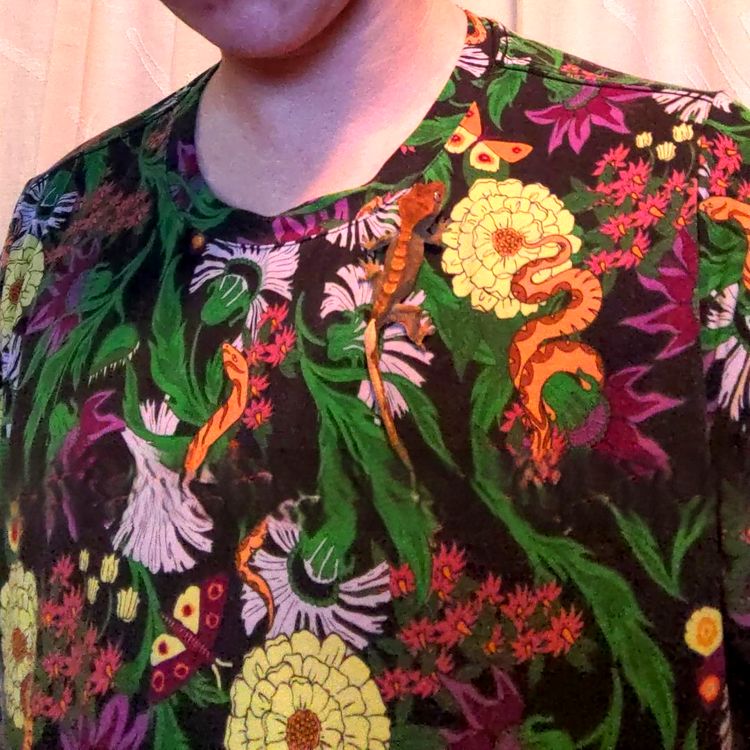 Этот мужчина мог бы стать идеальным шпионом в мебельном центре. Совпадение принтов настолько пугающее, что кажется, будто голова просто парит над столешницей.