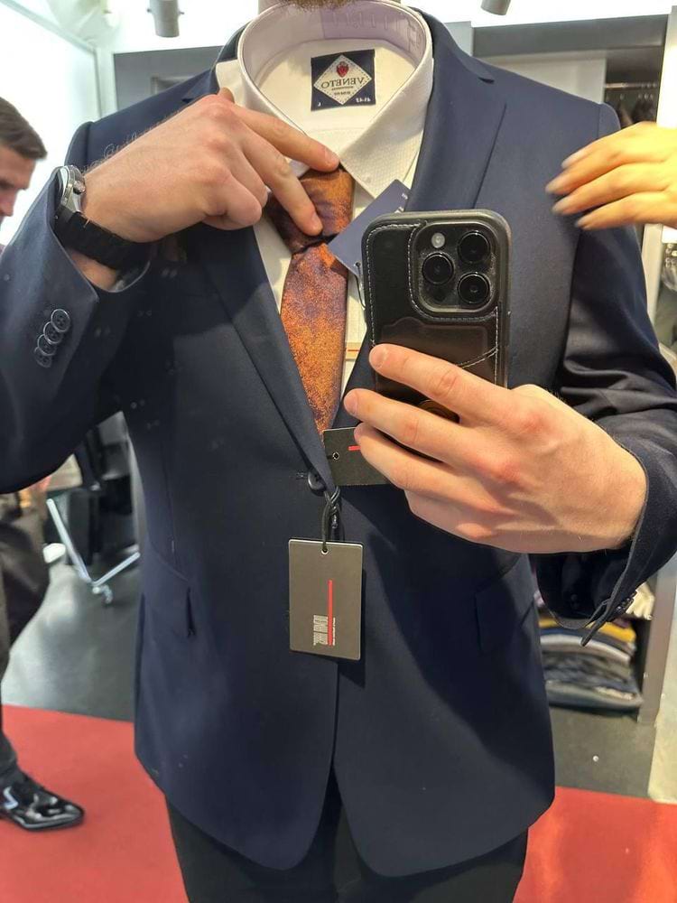 Лайфхак для примерки: приложить рубашку под пиджак так, чтобы со стороны это выглядело как оживший манекен.