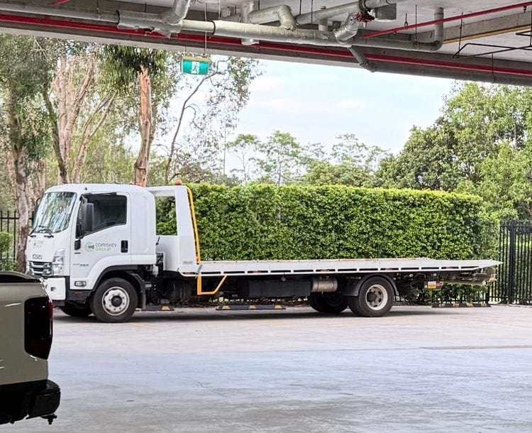 Логика подсказывает, что кусты просто растут за забором, но глаза упорно твердят: грузовик везет в кузове целый парк.