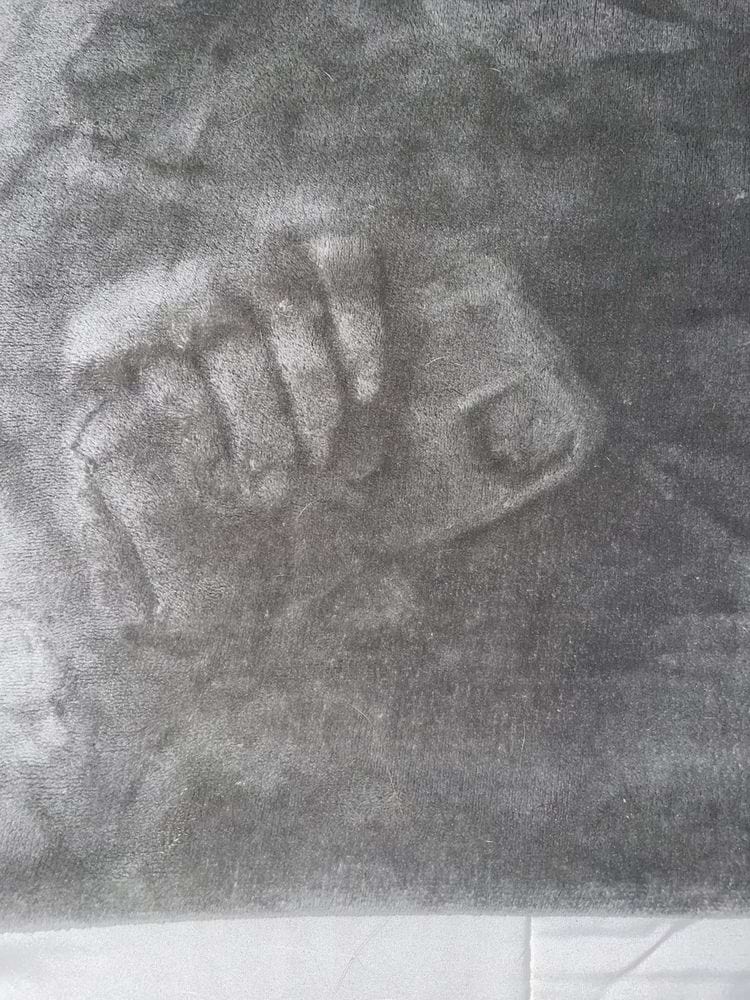 Текстурный отпечаток. Флисовое одеяло сохранило настолько детальный след от телефона, что это похоже на цифровое искусство.