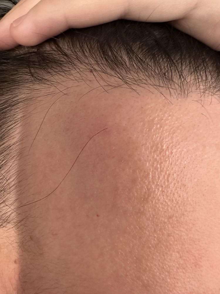 Последний из могикан. Волосы могут уйти в прошлое, но один фолликул-одиночка на лбу продолжает хранить верность старой линии роста.