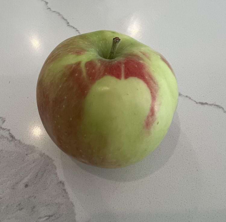 Яблоко с характером. На кожуре этого фрукта проступил рисунок, подозрительно напоминающий чей-то автопортрет.