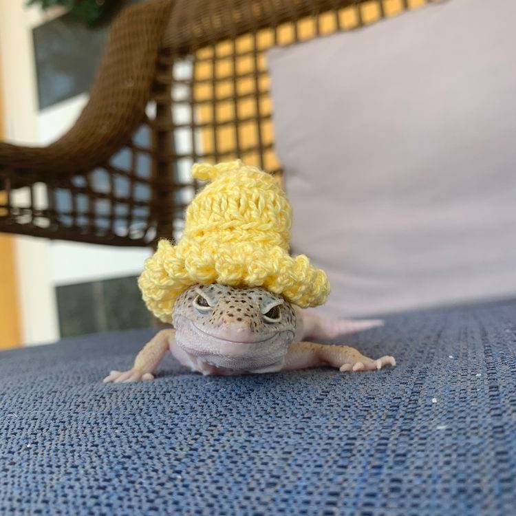«Мама связала крошечную шапочку для моего геккона. Уровень милоты зашкаливает, я сейчас расплачусь».