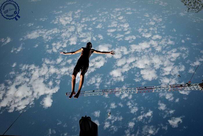 Мгновение невесомости, пойманное в объектив. Грань между асфальтом и облаками стерта.