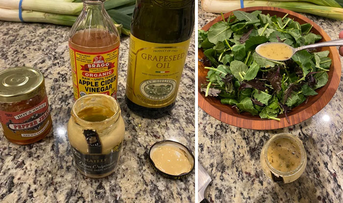 Не спешите мыть банку из-под горчицы, если там осталось немного продукта на стенках. Добавьте туда 15 мл яблочного уксуса, немного растительного масла и ложку ягодного варенья (или меда). Закройте крышку, энергично встряхните - и идеальная салатная заправка готова. Она может храниться в холоде до трех недель.