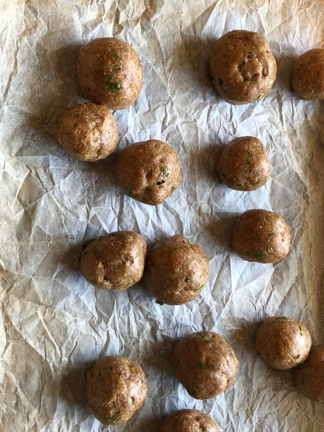 Чтобы мясной фарш не лип к рукам, смажьте ладони растительным маслом. Это работает эффективнее воды: шарики получаются идеально гладкими и одинаковыми по форме.