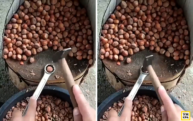 Если под рукой нет орехокола, накидной гаечный ключ поможет справиться с фундуком. Орех фиксируется внутри кольца и легко раскалывается, а ваши пальцы остаются в полной безопасности.
